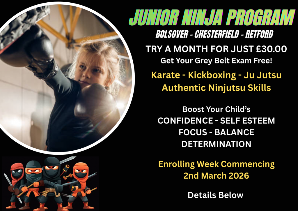 Give your child the ultimate martial arts experience with our Junior Ninja Programme – designed for kids aged 6 years and above. Over 4 exciting weeks, we teach a dynamic mix of:
